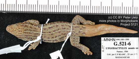 | Synonym | Lygodactylus montanus PASTEUR 1965 Lygodactylus montanus — KLUGE 1993 Lygodactylus montanus — GLAW & VENCES 1994: 284 Lygodactylus (Lygodactylus) montanus — RÖSLER 2000: 93 Lygodactylus montanus — PUENTE et al. 2009: 42 Lygodactylus montanus — RÖLL et al. 2010 Lygodactylus montanus — GIPPNER et al. 2021 |