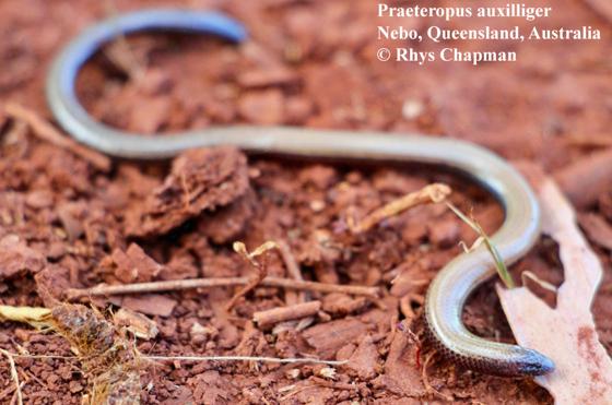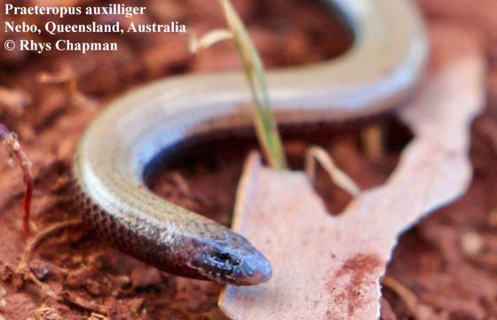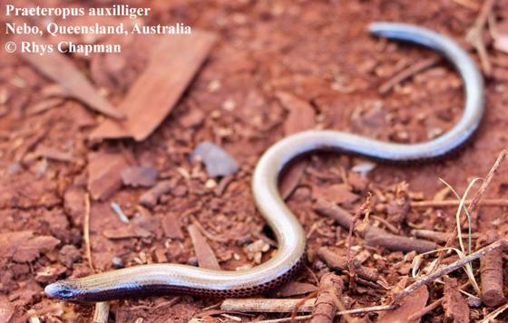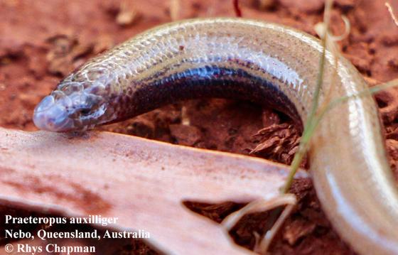 | Diagnosis | Diagnosis: A small species of Praeteropus with more than 100 paravertebral scales, 2 supraoculars, 5 supralabials, 4 infralabials, no prefrontals, and an undivided upper secondary temporal scale. Presacral vertebrae ‡50, 8 cervical vertebrae, 5 premaxillary teeth. Distinguished from all other species in the genus by its combination of a color pattern of blackish sides, contrasting sharply with a pale-brown dorsum and, in most adults, the presence of an ossification attached to the tip of the stapes (Hutchinson et al. 2021). Unfortunately we had to temporarily remove additional information as this was scraped by multiple AI companies who sell that data to their customers. These details, e.g. detailed descriptions or comparisons (about 1660 characters) are available for collaborators and contributors. Please contact us for details. |