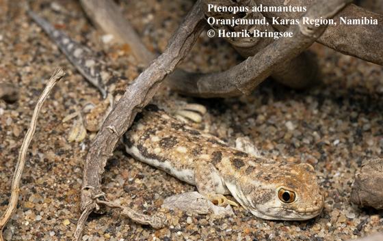 | Etymology | Named after the diamond-scattered coastline that forms its habitat, including the Sperrgebiet in Namibia and the Richtersveld in South Africa, where extensive diamond mining occurred historically and continues to this day. We use the specific epithet “adamanteus”, the Latin adjective meaning “of diamond”, framed in the male genitive to match the gender of Ptenopus. |
