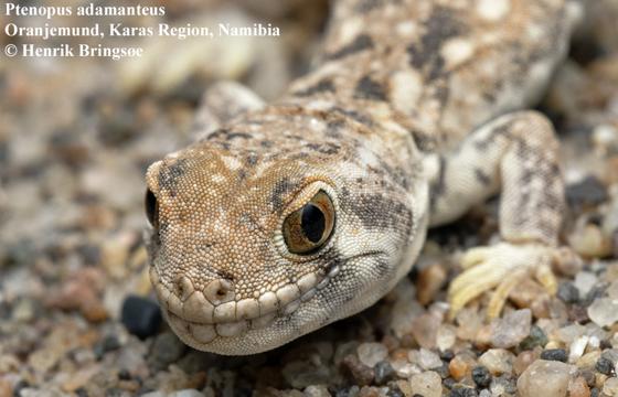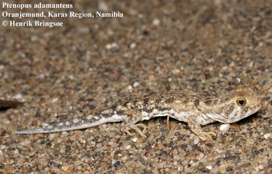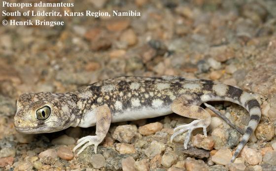 | Synonym | Ptenopus adamanteus BECKER, ALEXANDER & TOLLEY 2025: 300 Ptenopus garrulus maculatus – FITZSIMONS 1935: 525; (in part) Ptenopus garrulus maculatus – FITZSIMONS 1937b:160 (in part) Ptenopus garrulus maculatus – HAACKE 1969: 92 (in part) Ptenopus garrulus maculatus – MERTENS 1971: 44 (in part) Ptenopus garrulus maculatus – HAACKE 1975 (in part) Ptenopus garrulus (in part) – BRAIN 1962: fig. 3 (in part) |