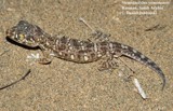 | Diagnosis | Diagnosis: Medium-sized, up to 60 mm from snout to vent; toes not depressed, at most weakly fringed, with 3-5 scale-rows beneath; rostral and first upper labial scale reach nostril which is directed forwards, outwards and upwards; preanal pores usually present; cloacal tubercles in a single row; autotomy restricted to tail-base; no prefrontal projection; upper border of prootic not obviously sloping downwards; epipterygoid close to skull roof in protracted skull; 26 presacral vertebrae; 5 pairs of nuchal ribs; usually 5 basal caudal vertebrae; clavicle expanded. Similar to S. sthenodactylus but distinguished by higher number of scale rows beneath digits and by consistently having 26 presacral vertebrae and, usually, femoral pores. S. slevini which may contact S. yemenensis, differs in typically having the first upper labial separated from the nostril, finer body scaling (often over 115 scales around mid-body), a strong prefrontal projection, upper border of prootic sloping strongly downwards, epipterygoid well separated from skull roof in protracted skull, usually 25 presacral vertebrae and 6 pairs of nuchal ribs [ARNOLD 1980]. |