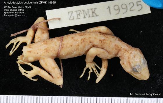 | Synonym | Cnemaspis (Ancylodactylus) occidentalis ANGEL 1943 Cnemaspis africanus occidentalis — LOVERIDGE 1947: 89 Cnemaspis africana occidentalis — WERMUTH 1965: 12 Cnemaspis occidentalis — KLUGE 1993 Cnemaspis (Ancylodactylus) occidentalis — RÖSLER 2000: 63 Cnemaspis occidentalis — TRAPE, CHIRIO & TRAPE 2012 Ancylodactylus occidentalis — MALONZA & BAUER 2022 |