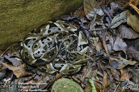 | Synonym | Bothrops sanctaecrucis HOGE 1966 Bothrops sanctaecrucis — WELCH 1994: 35 Bothrops sanctaecrucis — MCDIARMID, CAMPBELL & TOURÉ 1999: 271 Bothrops sanctaecrucis — FENWICK et al. 2009 Bothrops sanctaecrucis — CARRASCO et al. 2012 Bothrops sanctaecrucis — WALLACH et al. 2014: 119 Bothrops sactaecrucis — DAL VECHIO et al. 2021 (in error) |