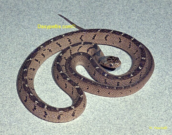 - Gans, C. 1957. Dasypeltis medici lamuensis, a new race of egg-eating snkae (Ophidia, Reptilia) from coastal East Africa. Breviora (79): 1-13 - get paper here