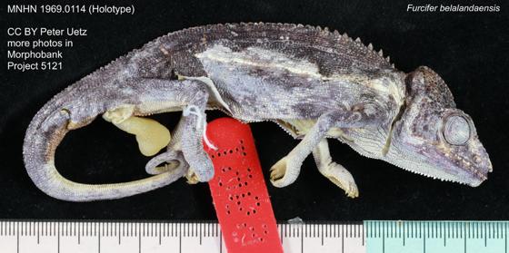 - Brygoo, E. R. & C. A. Domergue 1970. Notes sur les Chamaeleo de Madagascar. C. belalandaensis n.sp., Caméléon du Sud-Ouest. Bull. Mus. nat. Hist. nat., Paris 42 (2): 305-310. - get paper here