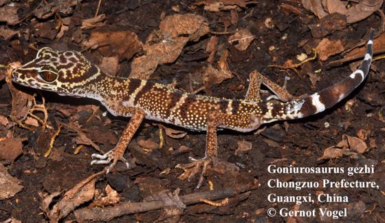• ZHU, XIAO-YU; GUANG-YU CHEN, CRISTIAN ROMÁN-PALACIOS, ZHENG LI, ZHU-QING HE 2020. Goniurosaurus gezhi sp. nov., a new gecko species from Guangxi, China (Squamata: Eublepharidae). Zootaxa 4852 (2): 211–222 - get paper here